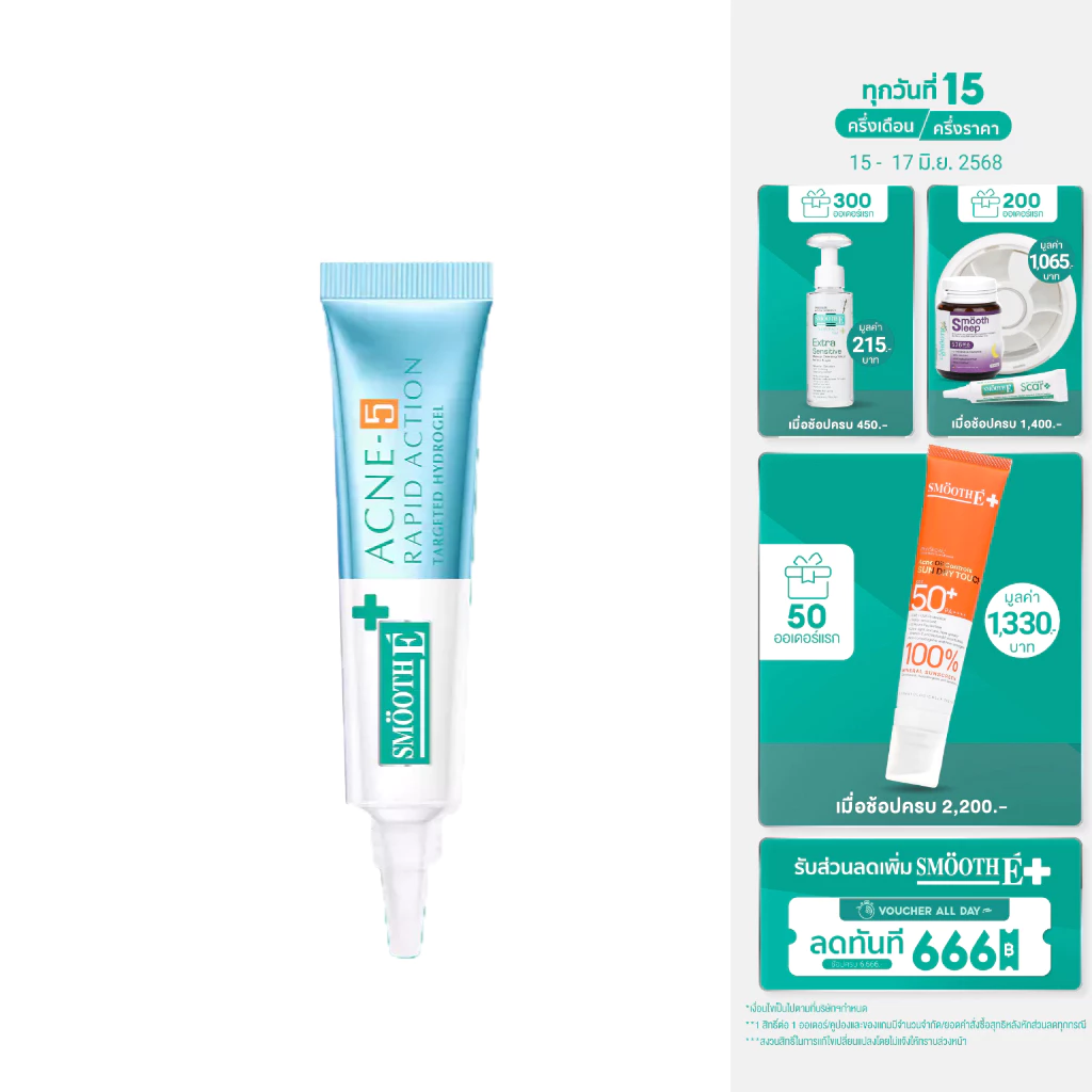 - 10 กรัม ราคา 215 บาทSmooth E Acne-5 Rapid Action Plus